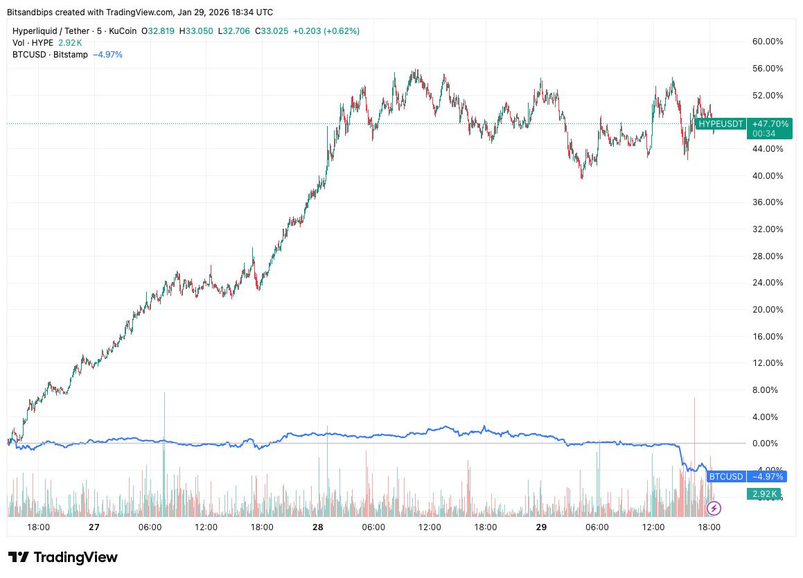 This move was not riding a market rally. It was specific to Hyperliquid.